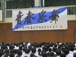 11月21日(金)6時間目に、保健体育の授業の一環として「校内持久走記録会」が実施されました。本校500mコース(運動場及び体育館外周)を使って、女子は2,000m(500mコース×4周)、男子は3,000m(500mコース×6周)のタイムトライアルです。5時間目の授業終わったらすぐ更衣を済ませ、グラウンドに集合した1~3年生の生徒たち。実施方法の説明・準備運動をして、早速女子の部からスタートしました。一斉に走り出した生徒たちはどの生徒も真剣で、自分の実力を精一杯出して「自己ベストを狙おう」と頑張っていました。続いて男子の部。みんな懸命に走ります。後半になると、息が荒く、表情も苦しそうな生徒もいますが、もてる力を出し切って最後まで走り抜きました。体調・けがなどで走ることができなかった見学生たちも、運営面で一生懸命働いてくれました。平日の午後のお忙しい時間にもかかわらず、多くの保護者の方が応援に駆けつけてくださいました。ありがとうございました。生徒たちの力になりました。また、清掃で外に降りてきた現高1の中進生の先輩たちが、清掃の合間に温かい応援をしてくれました。木々が晩秋・初冬の色をたたえる中、小春日和といっていいような日差しが、頑張る生徒たちに温かく降り注いでいました。