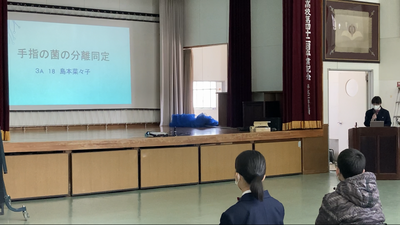 3月3日(金)の3・4限目に1年生の自然科学探究の代表者、3年生の卒業論文の代表者による発表会がありました。