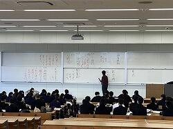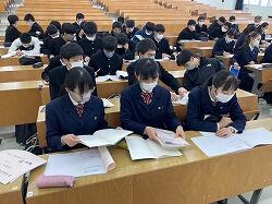 二日間とも90分授業の一日4コマの講義が行われ、4日は数学・英語(2コマ)・古文、5日は英語・現代文・数学(2コマ)を受講しました。6名は、いちばん前に座席を確保し、集中して講義を受けていました。共通テストの問題の解説を聞きながら、ところどころに受験のノウハウや、エピソード、今から大切にしていくことなどの大切なお話も盛り込まれており、普段経験できないよい学習に臨めたようです。