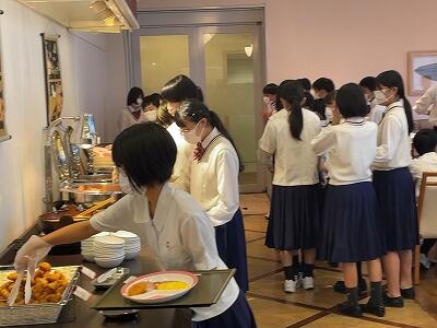 9月28日、修学旅行の2日目がスタートしました。生徒は昨日の疲れも取れた様子です。朝食も黙食を意識して、しっかり食べています。
