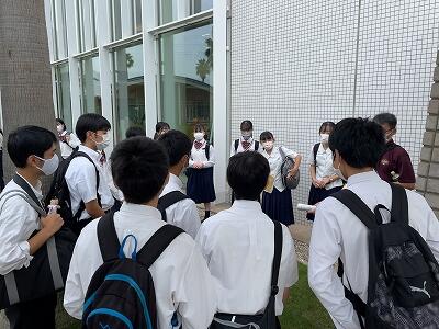 この後、東京大学に向かいました。東京大学では、鈴木英之教授より海の再生可能エネルギーというタイトルでの講義、そしてラボ見学をさせていただきました。現在、3年生は様々な活動の中でSDGsについて学習をしていますが、そのことにもつながる内容を分かりやすく説明していただきました。また、ラボ見学では講義の話につながる実験などを見せていただきました。全てのプログラムが終了した後に、大山祥さんがお礼の言葉を述べました。最後は赤門など東京大学の名所となる場所で記念撮影をしました。鈴木教授、宝谷先生を始めとした東京大学のスタッフの皆さんには大変お世話になりました。ありがとうございました。