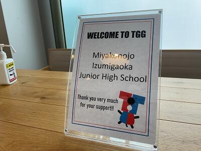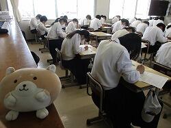 ※3年生の教室では、後ろから英語の授業に登場するタムタムくん(ぬいぐるみ)も応援していました。