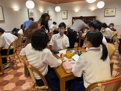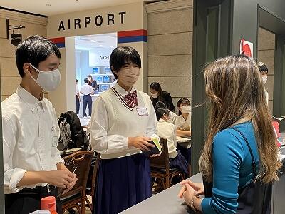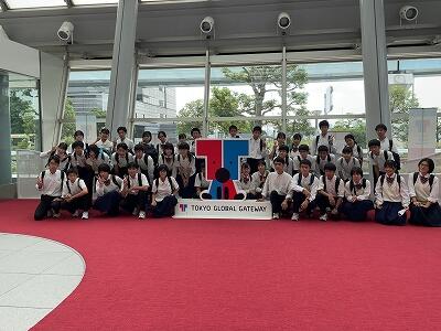 この後、最初の訪問地TOKYO GLOBAL GATEWAY (TGG)へと向かいました。ここでは、海外をイメージして作られた街並みの中、英語圏を中心とした出身のエージェントと英語を通じてコミュニケーションをとるプログラムが行われました。はじめは緊張していた生徒たちもフレンドリーなエージェントのおかげで自分から積極的にコミュニケーションをとっていました。英語によるディスカッションが終わった後、田中未来さん、久保ひびきさんが英語でお礼の言葉を述べました。生徒は楽しい雰囲気で英語に触れることができ、普段学習している英語の大切さを実感したのではないかと思います。TGGスタッフの皆様、ありがとうございました。