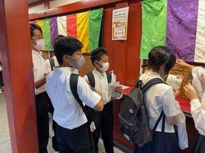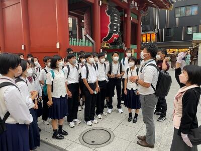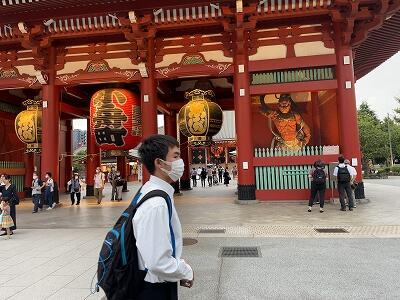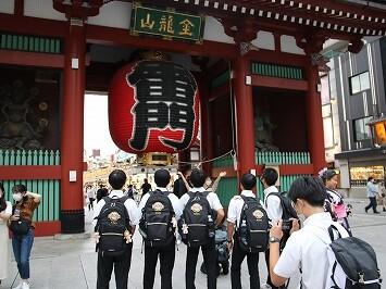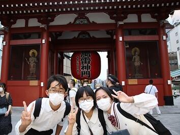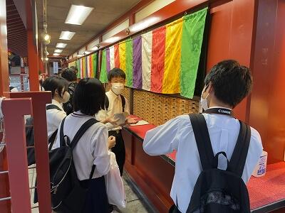 最後に訪れた浅草では雷門や浅草寺を散策しました。仲見世から浅草寺に向かう参道では日本の伝統を味わうことができました。参拝した後、おみくじを引いていました。浅草寺はおみくじで凶が出る確率が高くて有名だと言われています。理由は「油断せず頑張りなさい」という意味だとか。「先生!凶が出ました!」と不安がる生徒が多発しましたが、理由を説明すると、ホッとし納得していました。