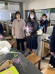 理科の授業ではたくさんの実験が行われます。1月12日(金)1時間目の理科の時間は静電気の実験が行われました。冬になると誰しもどこかで静電気の被害(?)に遭っていることと思います。実験では 生徒たちは驚きながらも楽しそうに実験に臨んでいました。