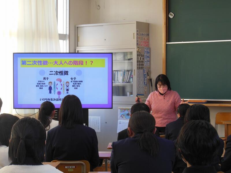1月16日(火)7時間目、2年生は性教育講話を聞きました。講師を務めてくださったのは、ほのか助産院 安藤直美様です。毎年、本校で性教育講話をしてくださっています。