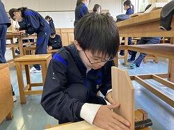 2学期途中から1年生は技術・家庭科の授業は技術分野の学習をしています。現在取り組んでいるのは木工製作。木の性質や木目のこと、のこぎり等の道具の使い方などをひととおり学習し、実際に木工作品をつくっています。飾り棚、本棚、引き出し状の棚など様々なものを多くの選択肢の中からそれぞれ選んで製作しています。1月18日(木)3・4時間目の技術の授業を覗いてみると、2学期途中から取り組んでいるこの学習も、そろそろ大詰めです。仕上げにやすりをかけている人も。さて、どのような作品ができあがるでしょうか。生徒たちは安全に気をつけながら、互いに協力したり、教え合ったりしながら積極的に学習に臨んでいました。「切ることとつくること」は生きていくうえでとても基本的な人間らしい営みの一つです。DIY(Do It Yourself)という言葉も世の中に浸透しつつあります。自分でやる、その基礎を学べる技術分野の授業です。
