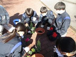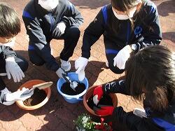 1年生・福祉体験学習~高齢者施設に贈る花の寄せ植えの作成~