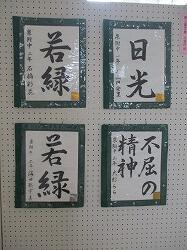 生徒下足室から教室へ向かう場所に、中学生の書道作品が高校生の作品と共に展示されていました。一つはJA共済小・中学生書道コンクール入賞作品。楷書「相互扶助」、行書「開拓精神」「崇高な理想」。もう一つは、第57回都三書写展の入賞作品です。いずれも行書で、「日光」「若緑」「不屈の精神」。墨跡鮮やかに、凜とした文字たち。前を通るとき、少し背筋が伸びるような、そんな気持ちになりました。