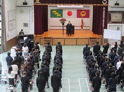 天気予報は午後から晴れ。予想を上回り、10時を回る頃にはよい天気になりました。明日からはしばらく好天が続くようです。雨降って地固まる。その地面から、活き活きとしたみずみずしい新たな芽が天に向かって伸びゆこうとしています。今日は始業の日。生徒たちにとっての新たな年度、新たな学年の始まりの日です。昨年度末に決定をみた、スーパーサイエンスハイスクール(SSH)の一年目。日々積み重ねる毎日にすべきこととして何か目に見えて大きな変化があるわけではないのですが、学びを重ねていくうちに、指定による恩恵をさまざまな場面で受けていくことでしょう。「ハイスクール」と名のつく指定ですが、中学生もともに恩恵にあずかれるのは、附属中ならではのよさです。4月9日(火)。7時前後から生徒たちが少しずつ登校する姿を見せ、学校らしいにぎやかさが戻ってきました。まず大専心(大清掃)で、自分たちのスタートの場を、そして明日入学してくる1年生を思って学校をきれいにしました。続いて体育館に移動して新任式がありました。先日14名の先生が旅立たれて寂しかった学校ですが、新たに18名もの先生方が赴任され、喜びも一入です。中学校所属、または中学生に授業をしてくださる先生は次の3人の先生です。