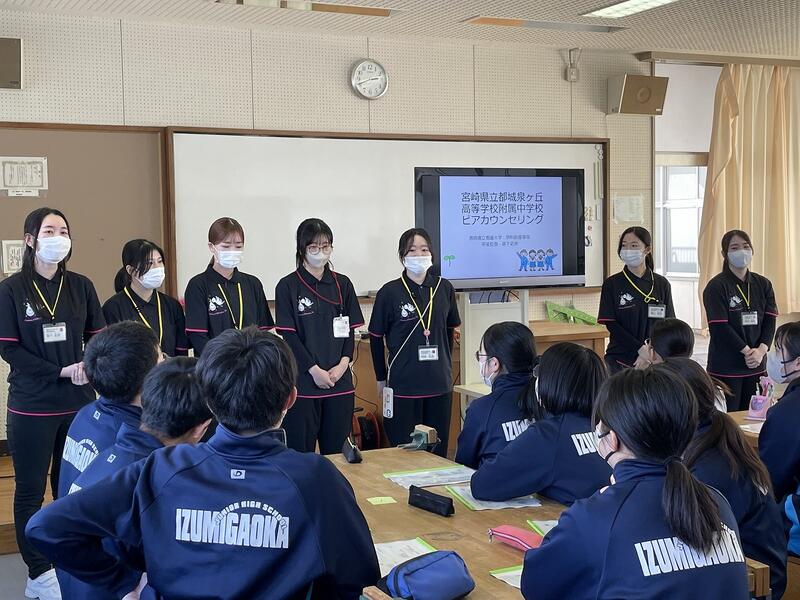 毎年度恒例、2年生による新1年生へのサポートシステムである「FITS」が、今年度も4月12日(金)1・2時間目に実施されました。FITSとは、「Fresh Izumigaoka Training System」の四つの単語の頭文字をとった名前です。単語のfitには「適応する」という意味もあるため、新1年生が早く学校に慣れることができるように、という意味も込められています。このサポートシステムは、薩摩藩(江戸時代の都城は薩摩藩島津氏の領地でした)に伝統として受け継がれていた「郷中教育」(6歳~25歳くらいの若者が互いに協力して学んだり鍛錬したりする教育)の流れをくむものでもあります。新1年生の入学を心待ちにしていた2年生は、前日にしっかりと打ち合わせをし、この日を迎えました。1・2年生合同で12班に分かれ、自己紹介から始まり、学習面について、生活面についてなど、さまざまなことを確認していきました。最初は緊張気味の人もいましたが、少しずつ笑い声も聞かれ、和やかに進んでいきます。後半は校内案内で、広い泉ヶ丘の校舎を案内し、それぞれに場所について説明していました。2年生、先輩らしい姿が見られ頼もしく感じました。1年生、少しでも早く学校に慣れ、楽しい泉ヶ丘生活を送ってほしいと思います。