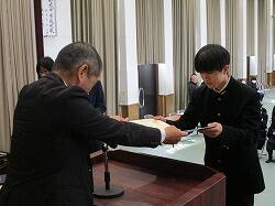 本校では2月14日(水)に本年度の「立志式」を予定しています。それに向けて、2年生では様々な準備を進めているところです。1月31日(水)6・7時間目の総合的な学習の時間に、式で披露する決意の一文字を、書道の先生の指導の下、筆を執ってそれぞれが認めました。最初に何枚か練習をしました。さすがに専門の先生の指導を3年間仰いでいますので、皆、上手です。練習で自信をつけて、いよいよ本番。色紙(しきし)を前にそれぞれ真剣な表情で筆をおろします。あとは慎重に筆を運ぶ生徒、勢いをつけ一気に書き上げる生徒、表情はいろいろです。何とか全員色紙が仕上がりました!立志式当日、この日書いた「一字」が披露されます。