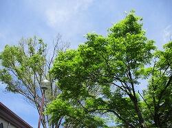 新しい年度、きらきらと輝くやる気に満ちた表情の生徒たちを見ると、これから先の泉ヶ丘がますます楽しみになってきました。学級写真撮影を終えた帰り道に見た、義友会館横の木の青葉がまぶしく輝いていました。