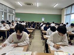 5月14日(火)、本年度初めての定期テストである中間テストが始まりました。(高校2・3年生は13日から既に始まっています)今回は3年生は修学旅行のため、1年生・2年生だけのテストとなります。特に1年生は初めての定期テストですので、どのように取り組めばよいか、ということも学びの一つとなります。中間テストは国語・社会・数学・理科・英語の5教科です。14日は朝から勉強に真剣に取り組んだり、友だちに質問したりと、一生懸命取り組む姿が見られました。テストが始まると、みな集中して問題に挑んでいました。テストは15日(水)までです。頑張りましょう。