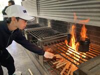 宿泊体験学習2日目。今日も最高の天気に恵まれました。「朝のつどい」でラジオ体操などをした後、美味しい「朝食」をいただきました。そして、野外炊飯に向けての「火おこし」体験です。各班が協力しながら火をおこしろうそくに火を灯しました。この火をもって、次の野外炊飯活動場に向かいます。