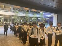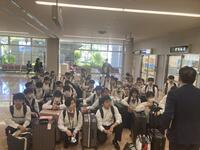 朝から気持ちのよい爽やかな初夏の晴れ空。そんな5月14日(火)、3年生40名はみんな揃って修学旅行に出発しました。集合場所には保護者の方も多数見送りに来てくださいました。修学旅行実行委員長の瀬口佳蓮さんが、実行委員が本当に頑張ってきたこと、そしてそれを支えてくれた3年の仲間、保護者の方々など多くに感謝しながら、みんなが「楽しかった」と言える修学旅行にできたら、と思いを語ってくれました。朝から駐車場整理や見送りに来てくださった先生方にも見送られ、バスは一路宮崎空港へ。飛行機チケットを受け取り、荷物を預けて中に入ると、なんと都城市長さんとお会いしました!飛行機に乗り込もうと歩いていると、地上係員さんが「Have a nice Trip」と文字と絵を描いてくださっていてみんな笑顔に。飛行機からは富士山の姿も楽しむことができました。羽田空港に着いてバスで東大へと移動しました。