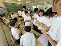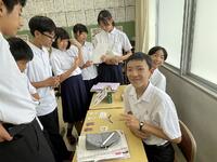 10月8日(水)6・7時間目に、2年生で総合的な学習の時間・自然科学探究分野の出前授業が行われました。今回の授業は「光の不思議」。講師としておいでくださったのは、宮崎大学教育学部の秋山博臣先生です。私たちは光に囲まれて生活しています。光の屈折、虹、液晶などなど、生徒たちの身近にあるものの不思議から光について学んでいきました。光が作り出す不思議な装置にも触れ、生徒たちは探究心を掻き立てられていました。授業の最後に、生徒を代表して川崎蓮奈さんがお礼の言葉を述べました。お忙しい中、授業をしていただいた秋山先生に心からお礼申し上げます。