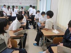 3年生は9月末の福祉交流体験活動(保育園・こども園訪問)についての報告を11の園ごとにまとめていました。スライドを作ったり実演を考えたりと、それぞれが工夫して自分たちの体験をまとめていました。11月初めの総合的な学習の時間に、学級で発表する予定です。充実した学習内容の報告が聞けそうです。