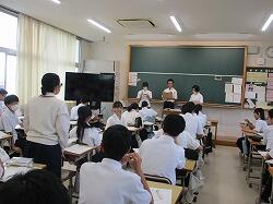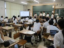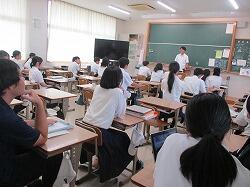 10月17日(金)5・6時間目に2年生は自然科学探究分野の出前授業で、水の浄化について学びました。講師を務めてくださったのは、宮崎大学工学部長・土木環境プログラム教授・鈴木祥広先生です。前半は「‘’泡‘’で汚れた水を瞬時に濃縮・除去する!」というテーマのもと、泡を使って水環境に関わっていく研究についてお話を伺いました。その中には、研究を進めていく上での研究者の姿勢などのお話もあり、興味深くきくことができました。後半は、「大学で‘’環境‘’について学びたい!」というテーマで、日本の水資源、特に上下水道などについて現状と問題点などのお話を伺いました。普段何気なく使っている身近な水について考えることができました。最後に生徒を代表して、大久保蛍光さんがお礼の言葉を述べました。お忙しい中、授業をしてくださった鈴木先生、ありがとうございました。
