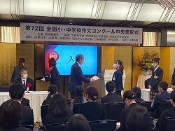 12月3日(土)、東京・ホテルニューオータニにて、讀賣新聞社主催「第72回全国小・中学校作文コンクール」中央審査入賞者の表彰式が行われ、本校2年生松山柚乃花さんが見事入選を果たし、表彰を受けました。作文は、地域と自分との関わりを10枚を超える枚数に丁寧に綴った佳作です。松山さんが小さな頃から地域に支えられ成長してきたこと、これからも成長していくことが優しい筆致で書かれています。なお、後日、都城市役所を訪れ、市長に受賞の報告を行いました。