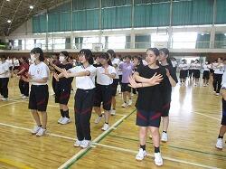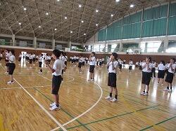8月26日(月)2・3時間目に、中学体育が行われ、最初にグラウンドでリレーの入退場や待機位置・退場位置の確認をしました。1年生~3年生まで全員で繋ぐリレー、本年度はどのような展開になるのでしょうか。リレーの準備を手早く済ませ、2時間目の途中から体育館に入り中学生アトラクションの練習を行いました。この日は2曲目の振り付けを覚える、ということで、ダンス実行委員のステージでの説明に合わせて3年生が1・2年生の間に入り指導しながら進めていました。残り時間はあまりありません。短時間で覚えてよりよいダンスができるよう頑張りましょう!