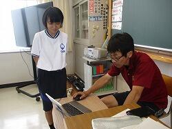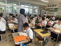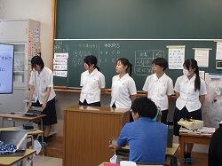 9月27日(金)5時間目に英語の支援訪問授業が行われました。授業学級は1年A組。単元は「現在進行形」です。この時間は、それまでに学んできた現在進行形を使ってプレゼンテーションで発表していく学習。ペアから始まり、グループ、全体とさまざまな形態を取りながら、「身近な人の今」を現在進行形で表現していきます。普段から声をしっかり出し、学習した内容を使って表現しよう、と意欲的に取り組んでいることが窺える授業となりました。1年生は本格的に英語学習に取り組みだしてまだ多くの時間は経過していないのですが、コミュニケーション力の高さに驚かされます。この日も、附属中・高校の先生方が多く参観されていました。