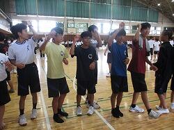 高崎中学校で行われた都城地区会長旗大会に、男女バスケットボール部が挑みました。他の学校はまだ夏休み中のところが多いと思いますが、本校は2学期が始まってすぐで、忙しい中です。また猛暑の中、男女とも本当によく頑張りました。男子は髙﨑中相手に34-52で敗れました。2年生が2人しかいない中、1年生と協力してよく健闘しました。女子は妻ヶ丘中相手に34-60でで敗れました。女子は過去最高得点を挙げ、今までの努力が少しずつ形になって現れてきています。秋の大会も近づいてきています。さらなる成長のきっかけになる大会となりました。
