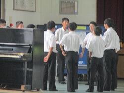 午後の部の最初が中学生合唱です。12時25分には中学生は待機。1年生がトップバッターですので、板付て開始を待ちました。合唱は次の通りの順番で行われました。