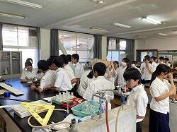 7月27日(土)に行われた一次予選を勝ち抜いた本校の2チームが宮崎県防災庁舎で行われた県二次予選に出場しました。「ジャイアントキリング」チーム(2年生 重留悠吾さん・田中史恩さん・平峯楓士さん)と「Lucky3」チーム(2年生 隅夏波さん・長倉史拓さん・原田竣乃介さん)の2チームです。筆記競技を終えて、取り組む実技競技。みんな集中して思考・工作・実験に取り組みました。そして、結果発表。参加チーム14チーム中、何と「ジャイアントキリング」チームが595点で県1位、「Lucky3」チームが518点で県3位というすばらしい結果となりました。これで本校は科学の甲子園ジュニア3連覇となりました。1位の「ジャイアントキリングチーム」は2位の小松原中学校のチームと合同で、12月に兵庫県で行われる全国大会に代表として出場します。おめでとうございます。