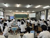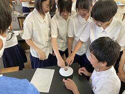 10月4日(金)3時間目、理科の支援訪問授業が行われました。2年生の授業で、中学理科室で行われました。単元は「化学変化と物質の質量『化学変化と質量の保存』」です。学習課題「化学変化前後で、物質全体の質量は変化するだろうか。」を確認した上で仮説を立て、実験パートナーと協力して気体発生と沈殿生成の実験を行います。二人ひと組で全員が実験に臨める恵まれた環境もさることながら、理科に対する興味関心の高さが学習態度からうかがえます。実験を通して結論に結びつけていく学習の形がしっかりと根付いており、普段から主体的・積極的に授業に臨んでいることが伝わってくる授業でした。今回も、中学・高校の先生方が多数参観されていて、本校の授業改善への取組への意欲の高さもうかがえました。