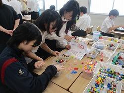 1年生は、9月の都泉祭後から、総合的な学習の時間にキャリア探究・福祉の学習に取り組み、障がい者や高齢者について学びを重ね、そのうえで今回の高齢者施設訪問に臨みました。各施設での注意事項などを事前学習したうえで、施設によっては何か出し物を考えて披露した班もありました。目線を合わせてそばで話をしたり、体操やゲームを一緒にしたり、おやつ・お茶の時間の準備片付けをしたりと、みんな一生懸命に取り組んでいました。お花を生けたり作品を作ったりした人たちもいました。