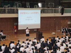 9月26日(木)7時間目に、清泉会集会が行われました。今回の清泉会集会は、前期から後期への代替わりの集会でもありました。4月からここまで中心となって清泉会を率いてきた9期清泉会執行部の締めくくり、そして新たなメンバーで集う10期清泉会執行部のスタートとなる会。9期までは現3年生が会長や専門委員長を務めていましたが、10期からは2年生が務めることになります。締めくくりの挨拶では9期の執行部メンバーから、緊張しながらも、みんなをまとめることの難しさや大切さ、人前で話す際にどう伝えるか、執行部で動いていくことで得た貴重な体験など今までの足跡がよくつ伝わる話を聴くことができました。新たなスタートの挨拶では、10期の執行部のやる気にあふれる挨拶を聴くことができ、これからが楽しみになりました。今度の旬間では各専門委員会の具体的取り組みを総務が見守る体制も工夫され、会の終盤には人権教育推進委員主導のゲームも行われ、盛り上がった会となりました。