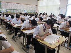 9月10日(火)~12日(木)の3日間、毎日1時間目に学力推移調査が行われました。今回は、2年生と3年生が受検しました。教科は国語・数学・英語の3教科です。この学力推移調査は全国の中高一貫校が受検している調査です。3日間、朝から真剣に取り組んでいる生徒たちの姿がありました。実力を出し切れたでしょうか。