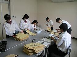 9月26日(木)5・6時間目に1年生は福祉教育体験活動で「視覚障がいの理解」の授業に臨みました。講師として来てくださったのは長友秀康様、ガイドヘルパーの東丸様と音訳友の会の方々です。前半は、長友様のお話を聴きました。視覚障がいがある中での生活について、郵便物や時計はどのようなものなのか、食事の配膳の仕方や牛乳パックとジュース類のパックの見分け方等、実際に使用している物を見せて下さり、詳しくお話してくださいました。東丸様からはガイドヘルパーとしてどのようなことをしているのかについてお話していただきました。体験を通してのお話に、生徒たちは真剣に聞き入っていました。そのお話を伺ったうえで、後半は音訳についてです。音訳とは?音訳の読み方とは?などについて、実際に声に出したり、マークの説明文を考えたりという活動を通して学びました。私たちの身の回りでは視覚障がいがあってもできるだけ不自由を感じることなく生活できるような工夫が多くされています。身近に気づいているものもありますが、改めて気付かされたものもあり、「福祉」の裾野の広さに学びを深めることができました。最後に生徒を代表して野﨑志織さんがお礼の言葉を述べました。お忙しい中、このような授業をしてくださった講師の方々、お世話くださいました都城ボランティアセンターに心よりお礼申し上げます。ありがとうございました。