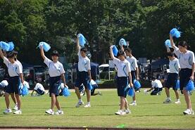 中学生は、「全員リレー」「中学生アトラクション」「団技」「選抜100M」や中学1年生から高校3年生までがバトンをつなぐ「団対抗リレー」に出場しました。生徒たちは日ごろの練習の成果を存分に発揮し、大いに盛り上がりました。