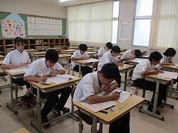 9月26日(金)16:50から、本年度2回目の実用英語技能検定一次試験が、本校を準会場として実施されました。受検する級によって、教室が分かれています。教室によっては高校生と一緒に受検していました。本校の生徒は、このように検定試験にも積極的に取り組み、学力を高めています。