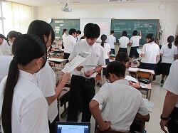 9月30日(火)5時間目に、「T-STEP」(県内の先生方と県教育委員会が協力して授業づくりを行うプロジェクト)の一環として社会の研究授業が行われました。今回の授業は、1学期から行っているひなた支援訪問授業も兼ねています。授業は3年生・「民主政治」。特に、どうやって「問い」を立てていくか、という授業の初めの部分にスポットを当てた授業でした。3年生は、普段と変わる様子もなく、プリントやタブレット、教科書などを場面に応じて使いながら、大変積極的に授業に臨んでいました。この日は、県内から10名程度の先生方、そして校内でも中高の先生方が多数参観されました。泉附のよさを十分見ていただけたのではないでしょうか。