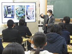 12月5日(木)~6日(金)、SSH1期生の高校1年生の希望者が、東京大学ラボツアーに参加しました。目的は、本物の研究に触れ、大学進学のその先を見つめ、ずっと続いていく探究活動を通して何をなしていくのかを考えていくきっかけをつくっていくことです。訪問先は東京大学柏地区キャンパス内の研究所と関連施設でした。2日間の貴重な体験を経て、附属中出身の1年6組の代表の生徒が、このツアーで体験した内容を附属中生にも伝えたい、ということで、12月17日(火)3時間目の学活の時間に2年・3年の学級で東大ラボツアー報告を行いました。2年生には石井葵さん・江夏妃奈乃さん、3年生には築地泉樹さん・野間奏志さんが担当してくれました。時計、音楽、生命化学、ノーベル賞、自動運転などなど、話は多岐にわたり、中学生はとても興味深く聴いていました。3年生の教室で、最後に高校生が語った、「勉強だけしていればいい、ということはない!」のひと言は心に響きました。高校生になったとき、このような機会があれば、ぜひ参加してみましょう。発表してくれた高校生の皆さん、ありがとうございました。なお、1年生には12月18日(水)に天本紡希さん・長瀬里歩さんが報告してくれます。