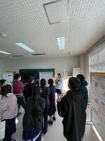 令和6年12月19日(木)の⑥⑦限目に、「令和6年ミニ探究発表会」を実施しました。高校1年生の理数科81名が16グループに分かれて、これまで探究してきたことをポスターセッション形式でまとめ、発表しました。附属中の先輩が、7組の生徒たちと一緒に、同じテーマで研究を深めてきたことを聞き、胸が熱くなる思いでした。附属中のときに頑張ったSKTの取り組みが、この探究発表会に生かされていると思います。自分一人ではなく、グループでの取り組みなので、互いに切磋琢磨しながら、ここまでまとめられたことを誇りに思いました。2月には、附属中の2年生もポスターセッションに参加します。現状の研究を発表することで、高校生から様々な視点やヒントをもらうことが目的ですので、気負わず頑張ってもらいたいと思います。