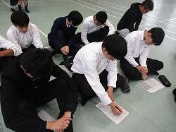 期末テストも終わり、12月23日(月)に予定されている「百人一首大会」に向けて、各学級頑張る季節がやってきました。文化清泉会を中心に、それぞれの学級、朝の会や帰りの会、昼食時間などに百人一首関連の取組を始めています。百人一首の問題を出したり、暗唱したり、得意札を増やしたり、試合に向けての暗記プリントを用意したり。学級によっては学活の時間等に既に練習を始めているところも……。そんな中、時間割を工夫してもらい、12月2日(月)6・7時間目には1・2年生、3日(火)3・4時間目には2・3年生の2時間連続の国語が同時に組まれており、その時間を利用して学年対抗の練習を行いました。2・3年生は既に経験済みの百人一首大会ですが、1年生にとって初めての大会となります。1年生は札の並べかたを学習しただけで、札を取る対抗戦をほとんどしたことがない状態です。会場としてお借りしたいずみ会館に行ってみると、ふた学年ともきれいにスリッパを靴箱にきれいに並べていました。早速練習。先輩に学びながら、一生懸命頑張っていました。翌日。2・3年生はさすがに慣れていて、それぞれのペースでどんどん札を取っていました。2・3年生は、昨年度は高校生(高1・高2)も参加した中で、共に入賞を果たしています。今年が楽しみです。これから国語の時間で何時間か練習を行いますが、各学級での取組がとても大切になってきます。また、文化清泉会の活動として、3日(火)を皮切りに計5日間の放課後希望者自主練習(18時まで)が計画されています。中学生、頑張りましょう!