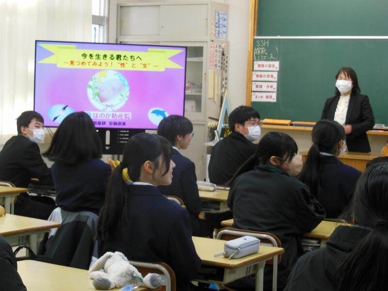 12月10日(火)7時間目、2年生は「今を生きる君たちへ~見つめてみよう”性”と”生”」というテーマで性教育講話を受けました。講師はほのか助産院の安藤直美様です。