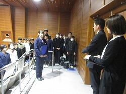 来年高校への進学を控えている3年生は、あと2~3年で選挙権を手にすることになります。権利をもつと、そこに義務も生じてきます。また、3年生に至るまでの日々で、学ぶこと、働くこと、公共の福祉などについて勉強してきました。社会の一員として、自分が何者で、何ができて、どうありたいのかについてもおりおり考えてきました。12月11日(水)4~7時間目、総合的な学習キャリア探究の中学最後の体験学習として「市役所・市議会訪問」に臨みました。今まで学んできたことを踏まえ、11月にオンライン学習で学んだデザイン思考で「都城」について自分たちで提案できることはないか各班で検討したうえでの体験学習です。3時間目まで授業を受け、昼食を済ませたうえで出発。到着すると市役所で担当してくださる都城市秘書広報課の押川様と岩元様が待ってくださっていました。会議室に案内され、商工政策課(サービス分野)、生涯学習課(共生分野)、総合政策課(交通分野)の三つの課からの事業説明をしていただきました。どの課の方も、プレゼンテーションとプリント両方を用意してくださり、事前に提出していたデザインシートに書き込んだ生徒たちからのソリューションアイデアについても触れながら、分かりやすく説明していただきました。実現するためには多くの声が必要で、それに後押しされることで実現する可能性もある、というお話、また、実現に向けて現状を更に深く分析して提案する必要がある、というお話は、これから自分自身が社会の一員として生きて考えていく上でとても大切な指標を教えていただいたと思います。また、都城にある学校で日々学びながら、都城市が取り組んでいる事業や施策について知らないことも多々あり、たくさんの人が社会のために、人々のために考え支えていることも改めて気付きました。ときおり笑いも交えながらの事業説明、本当にありがとうございました。事業説明の後、今度は市議会傍聴です。傍聴させていただいたのは市議会議員からの一般質問でした。「いつまでも安心して暮らせるまちに向けて」についての質問内容で、市民の立場に立って、支援や診療、住居、安全などのさまざまな分野からの質問がなされ、それに対して市から返答がなされる、という形で整然と、また分かりやすく議事が進んでいきました。事業説明でも、市議会の質疑応答でも、だれもが市民のために一生懸命考えよりよくしようと努力されていることがよく伝わってきました。生徒たちにとってよい学びとなりました。最後に、生徒を代表して平山笑里さんがお礼の言葉を述べました。今回の訪問に携わっていただいた全ての方々に御礼申し上げます。ありがとうございました。