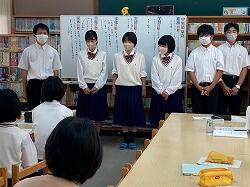 1年生は9月末から10月にかけて出前講座続きです。10月5日(水)3時間目の国語の授業の時間に、宮崎日日新聞社黒木友貴様が講師としておいでくださいました。今回の授業のテーマは「新聞を作ろう」。新聞はどのような作りになっているのか、取材の仕方、構成の仕方、写真の撮り方など、順を追って丁寧に教えていただきました。本校は適性検査を経て、さまざまな小学校から生徒が入学してきます。そこで、出身小学校をわかりやすく説明し、理解を深めるために国語の授業で「出身小学校新聞づくり」に取り組んでいます。教えていただいたことをもとに、すばらしい新聞を作り上げていきましょう。出来上がりが今から楽しみです。授業の最後には、生徒を代表して新増淳さんがお礼の言葉を述べました。また、授業終了後、日野あかりさんが黒木様の取材を受けて感想を述べていました。