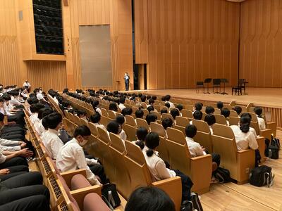 今回は、40名の生徒たちは20名ずつにわかれてお話を聞きました。