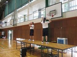 高崎中学校で行われた都城地区会長旗大会に、男女バスケットボール部が挑みました。他の学校はまだ夏休み中のところが多いと思いますが、本校は2学期が始まってすぐで、忙しい中です。また猛暑の中、男女とも本当によく頑張りました。男子は髙﨑中相手に34-52で敗れました。2年生が2人しかいない中、1年生と協力してよく健闘しました。女子は妻ヶ丘中相手に34-60でで敗れました。女子は過去最高得点を挙げ、今までの努力が少しずつ形になって現れてきています。秋の大会も近づいてきています。さらなる成長のきっかけになる大会となりました。