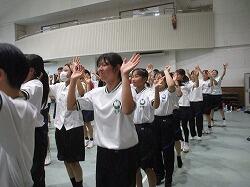 8月26日(月)2・3時間目に、中学体育が行われ、最初にグラウンドでリレーの入退場や待機位置・退場位置の確認をしました。1年生~3年生まで全員で繋ぐリレー、本年度はどのような展開になるのでしょうか。リレーの準備を手早く済ませ、2時間目の途中から体育館に入り中学生アトラクションの練習を行いました。この日は2曲目の振り付けを覚える、ということで、ダンス実行委員のステージでの説明に合わせて3年生が1・2年生の間に入り指導しながら進めていました。残り時間はあまりありません。短時間で覚えてよりよいダンスができるよう頑張りましょう!