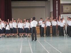 午後の部の最初が中学生合唱です。12時25分には中学生は待機。1年生がトップバッターですので、板付て開始を待ちました。合唱は次の通りの順番で行われました。