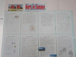 現在、校内の1年生・2年生・3年生のフロアの近くに、英語や海外にまつわる掲示物が掲示されています。1年生のフロア近くには、本年度の夏休み、都城市の海外派遣事業でオーストラリアでのホームステイに参加した人たちの報告が貼られています。2年生と3年生のフロア近くには、Diary in summerと題された、それぞれの学年の生徒たちの夏休みの日記が英文で記され貼られています。それぞれどんな体験をしたのか、何を学んだのか、どんな気持ちになったのか、読み応えたっぷりです。英語に限らずどの教科もですが、その教科の授業で学んだことから、視野を広げ、世界を広げ、新たな学びを得て、活かし楽しんでほしいと思います。英語のさまざまな掲示物も、その一助となるはずです。
