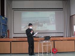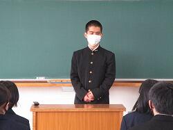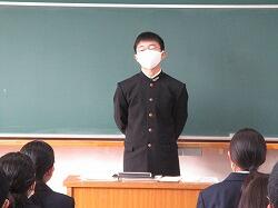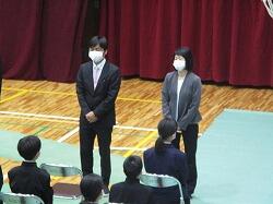 続いて3学期の終業式を各教室でリモートで行いました。校長先生は、つい先日卒業した高校3年生たちが、難しかった共通テストに向き合い、たゆまず努力を重ね、すばらしい実績を刻んだことを紹介され、これからの人生、辛いこともあるだろうけれど常に目標を高くもち夢の実現に向けて諦めず頑張ってほしい、と話されました。