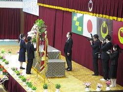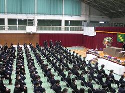 気持ちよく3年生を迎えようと、朝から2年生有志何名かが3年生の教室に至るまでの階段や廊下を掃除してくれました。3年生40名は胸に花を付け、晴れやかな様子で式に臨みました。